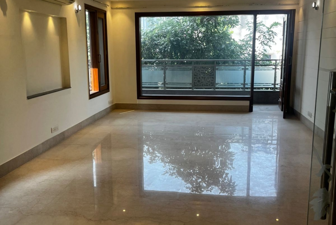 This North-facing second floor stands out because of its location, shielded from the main road noise and making it a top choice for those searching for ‘Peaceful luxury floors in South Delhi‘.
